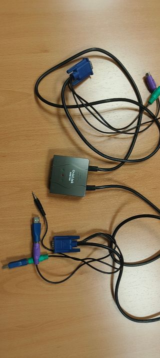 Conmutador KVM OvisLink KVM-102 en color gris. Se encuentra en buen estado. - Permite conectar dos PCs. - Incluye puertos para teclado, ratón y monitor. - Diseño compacto y discreto.