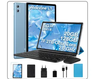 Tablet 10 Pulgadas Android 14 con 20GB RAM+128GB ROM/TF Ampliable a 2TB, Octa Core, 5G WiFi 6 | Widevine L1 | BT5.0 | | 8MP+5MP | Type C | GMS Tablet PC con Teclado, Funda y Ratón- Azul Tablet de 10 pulgadas, completamente nueva a estrenar. - Pantalla con resolución HD. - Procesador Octa Core a 2.0 GHz. - 20GB de RAM. - 128GB de almacenamiento interno. - Soporte para tarjetas TF de hasta 2TB. - Conectividad 5G y WiFi 6. - Certificación Widevine L1 para streaming de alta calidad.