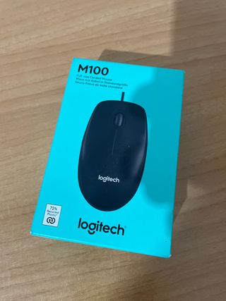 Ratón con cable Logitech M100, diseño clásico y cómodo. - Conexión USB. - 3 botones. - Fabricado con un 72% de plástico reciclado.
