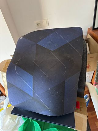 Alfombrilla para ratón Zowie BenQ, ideal para gaming. Presenta un diseño elegante en tonos azules oscuros con patrones geométricos. Está en buen estado, aunque tiene algunas motas de polvo. - Superficie de tela. - Diseño geométrico. - Tonos azules oscuros. tiene algún punto de tela levantado pero no influye en su funcionamiento.