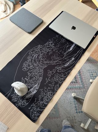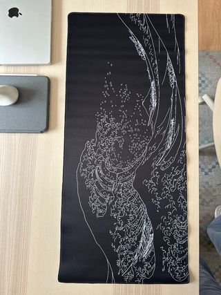 Alfombrilla de ratón con un diseño artístico de olas en blanco sobre fondo negro. - Diseño de olas blancas. - Base antideslizante. Lo compré por internet. No sé qué marca es, pero es muy bonita.