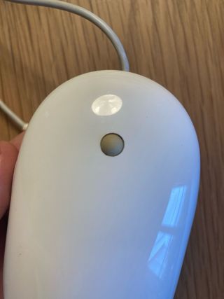 Ratón Mighty Mouse de Apple con conexión USB. No se ha usado nunca y funciona. Color gastado por el tiempo, como se aprecia en las fotos (la bolita)