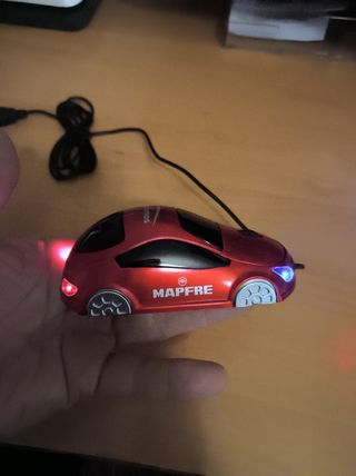 Ratón con cable, con diseño de coche. Es de color rojo y está en perfecto estado. - Diseño original y atractivo. - Conexión USB. - Con luces al encenderlo.