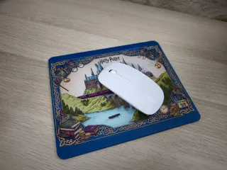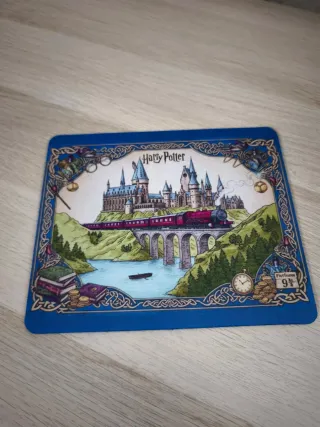 Alfombrilla de ratón con un diseño inspirado en Harry Potter y el castillo de Hogwarts. - Ilustración detallada del castillo y el Expreso de Hogwarts. - Marco decorativo con elementos icónicos de la saga. - Base de goma antideslizante.