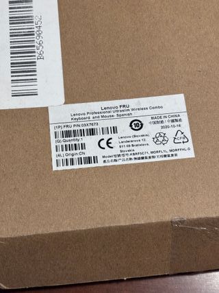 Conjunto de teclado y ratón inalámbricos de perfil ultra slim. Es el modelo professional en layout español. Similar a los de apple pero de lenovo. No tiene uso. Diseño elegante y contemporáneo en color gris hierro, conexión inalámbrica de RF de 2.4 GHz con 1 receptor nano USB, diseño de teclado de 2.5 zonas con teclas de función multimedia, mouse de alta resolución con DPI ajustable (3200, 1600, 800), teclado recargable con 3 meses de duración de la batería en carga de 2.5 horas, mouse alimentado por batería 2 X AAA con hasta 12 meses de duración de la batería.