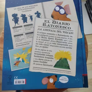 Libro infantil Super Ratón y la Amenaza del Volcán. - Ilustraciones coloridas. - Tapa dura. - Incluye solapas y troqueles.