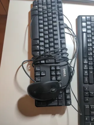 Regalo teclado USB de color negro y 2 ratones USB de color negro. Uno marca DELL y otro HP. Están en buen estado, todo funciona correctamente. Se regala porque ya no se usan. Te los puedes llevar todos juntos o por separado.