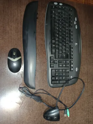 Conjunto de teclado, ratón y altavoz. - Teclado con diseño completo. - Ratón ergonómico. - Altavoz con acabado elegante. Funcionan perfectamente