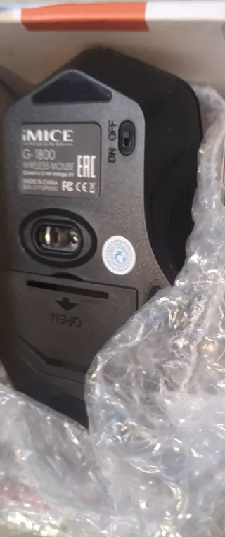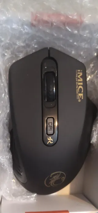 Ratón inalámbrico con un diseño elegante y moderno. Perfecto para tu día a día. - Botón DPI para ajustar la sensibilidad. - Rueda de scroll para navegación. - Logo de iMICE en color dorado. - Diseño ergonómico.