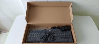 Kit de teclado y ratón con conexión USB. El teclado tiene un diseño de fibra de carbono y es de disposición QWERTY Español, lo tengo en caja nunca Escucho ofertas REALIZO ENVIOS - Ratón ergonómico. - Conexión por cable USB.