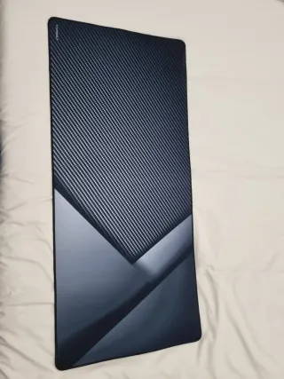 Alfombrilla de ratón de gran tamaño con un diseño moderno y elegante. Cubre una amplia superficie, ideal para tu escritorio. - Diseño con patrón de fibra de carbono. - Zona inferior con acabado liso y brillante. - Bordes cosidos para mayor durabilidad. Medidas: 90x40cm