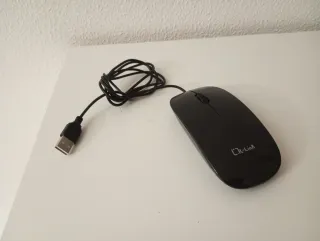 Ratón de ordenador con conexión USB. - Diseño ergonómico. - Rueda de desplazamiento. - Cable de conexión.