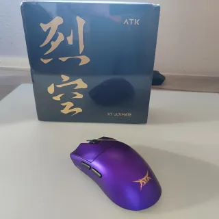 Ratón ATK X1 Ultimate en color morado, replica de Razer Viper V3 (misma forma), pero más ligero (51gr), con mejor acabado (el coating es increíble) y con mejores switches (al menos a mí parecer). El ratón que se ve al lado es el mismo modelo y es el que uso en el día a día. Tengo dos copias por un error en el reparto. Vendo la copia sin abrir.