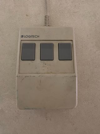 Ratón de ordenador vintage de la marca Logitech. Un accesorio retro para tu equipo. - Diseño clásico en color beige. - Tres botones de fácil acceso.