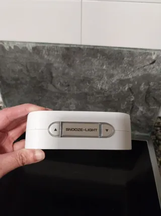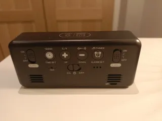 Reloj despertador digital emuse en buen estado. Es de color gris oscuro y tiene una pantalla digital. Funciona perfectamente. - Funciona con corriente eléctrica. - Diseño compacto y elegante. - Fácil de usar.