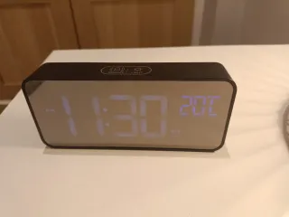 Reloj digital moderno con función de alarma y pantalla de temperatura. - Diseño elegante con acabado plateado. - Pantalla LED azul. - Incluye cable de carga USB. Me costó 30€