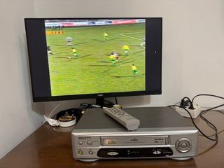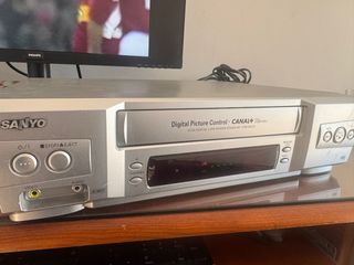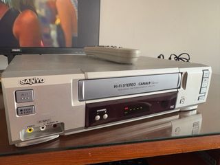 Reproductor de vídeo Sanyo en buen estado. - Hi-Fi Stereo. - Canal+ Ready. VHS como nuevo, tiene alguna marca superficial sin importancia del tiempo pero por dentro está impecable,funciona totalmente todo, cero fallos, mando original, limpieza de cabezales y engrasado recién hecho buena calidad de imagen monitor no incluido ¡Entra en mi perfil y échale un ojo a todos mis VHS! 😜😎
