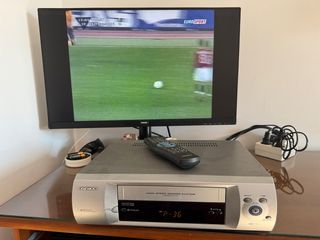 -Reproductor de video VHS. - 4 cabezales de cristal. - Sistema NTSC. - Incluye mando a distancia. Reproductor en perfecto estado muy nuevo, limpio el cabezal, engrasado el mecanismo interno, mando original, revisado y puesta a punto, muy nuevo por dentro monitor no incluido ¡Entra en mi perfil y échale un ojo a todos mis VHS! 😜😎