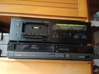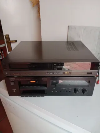 Conjunto de electrónica de audio y video. - Reproductor de video VHS Panasonic. - Reproductor de casetes estéreo Yamaha.necesitan mantenimiento la cinta jira pero no se oye video Panasonic como reprodutor de audio excelente calidad