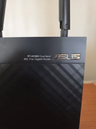 Router ASUS RT-AC68U en perfecto estado. WiFi AC1900 Dual Band (2.4GHz + 5GHz) con 3 antenas externas, cobertura amplia y estable. Mucho más rápido y potente que los routers de operadora, ideal para hogares con varios dispositivos conectados. Dispone de puerto Wan, 4 Gigabit Ethernet y 2 USB para máxima velocidad cableada y compartir discos/impresoras. Funciones avanzadas: router neutro, soporte Triple VLAN Movistar, firmware Merlin, servidor VPN, posibilidad de ejecutar scripts, etc. Incluye cable de red y cargador. Como nuevo. Entrega en mano, no envío.