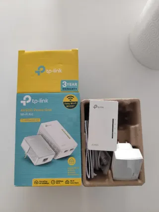 Vendo este kit de PLC TP-Link AV600 prácticamente nuevo. Es la solución perfecta si el Wi-Fi no te llega bien a alguna habitación o quieres conectar la consola o el PC por cable sin tirar metros de instalación por toda la casa. Lo que hace es pasar el internet a través de los enchufes de la pared. Es muy fácil de usar (Plug & Play): conectas uno al router y el otro donde necesites cobertura. Además, este modelo es el que clona tu red Wi-Fi, así que no tendrás que cambiar de contraseña al moverte por casa. Velocidad: Hasta 600Mbps por cable y 300Mbps por Wi-Fi. Puertos: 2 puertos Ethernet en el extensor.