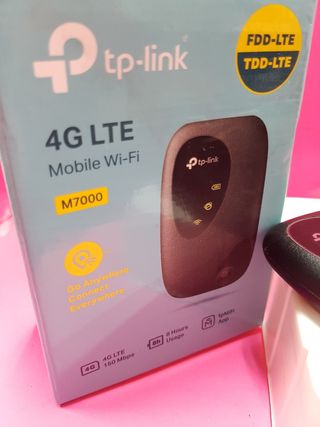Router Wi-Fi móvil 4G LTE de TP-Link, modelo M7000. Permite conectarse a internet en cualquier lugar. - Soporta FDD-LTE y TDD-LTE. - Velocidad de hasta 150 Mbps. - Duración de batería de 8 horas. - Compatible con la app tpMiFi.