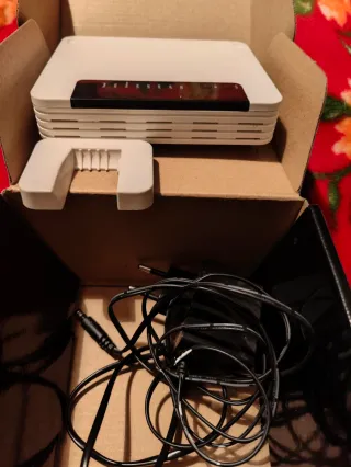Router Jazztel en buen estado. Poco uso, con soporte y con su caja. - Modelo de router WIFI. - Conexión a internet estable. - Incluye todos los cables.