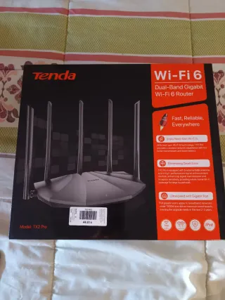 Router Tenda TX2 Pro con tecnología Wi-Fi 6 Dual-Band Gigabit. Muy poco uso, comprado el año pasado por 60€ en PcComponentes. - Antenas externas 6dBi para mayor cobertura. - Puertos Gigabit para alta velocidad. - Cobertura Wi-Fi para hogares grandes. - Transmisión rápida y baja latencia. Ignorar: tenda, tx2 pro, wifi 6, router, gigabit, ax1500, doble banda, dual band, internet, fibra optica, alta velocidad, gaming, latencia baja, cobertura, antenas, 6dbi, repetidor, amplificador, punto de acceso, red, conectividad, movistar, digi, orange, vodafone, yoigo, jazztel, smart home, domotica, mu-mimo, ofdma, wpa3, seguridad, teletrab
