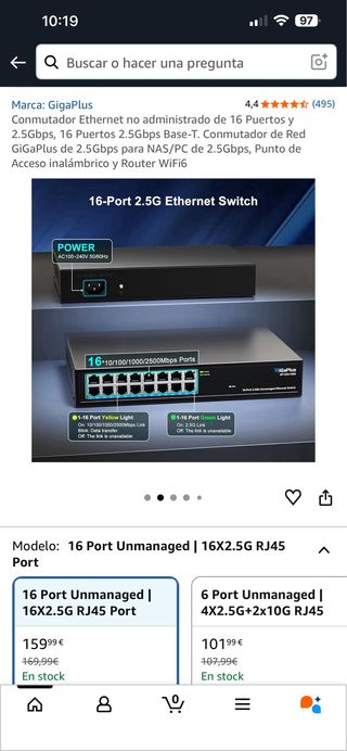 Conmutador Ethernet GigaPlus 16 Puertos 2.5Gbps