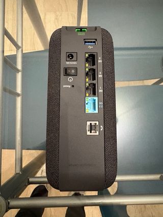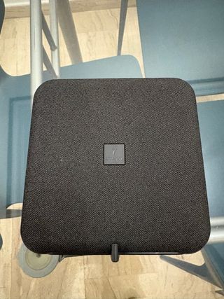 Router de la marca Livebox. - Diseño moderno y compacto. - Acabado en tela gris oscuro.