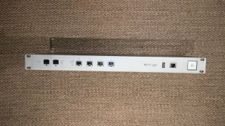 Router Unifi Security Gateway Pro de Ubiquiti. Preparado para montar en rack. Muestra signos de uso, algún rallón superficial, pero funcionando perfectamente. Con cable de alimentación.