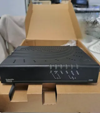 Router Scientific Atlanta modelo 2320. - Diseño compacto y moderno. - Indicadores LED para estado y actividad. - Puertos para conexión de red.