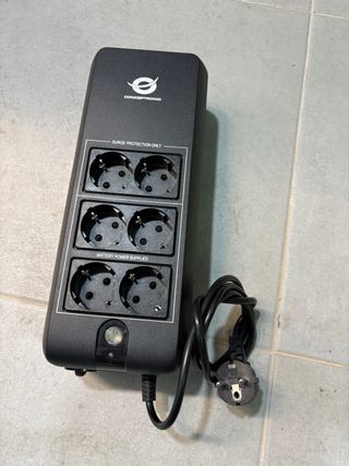 Sistema de alimentación ininterrumpida (SAI) de la marca Conceptronic. - Batería de plomo ácido. - 6 salidas AC tomas. - Protección sobrecargas. - Indicador luminoso frontal. Habría que ponerle una batería nueva, de ahí el precio.