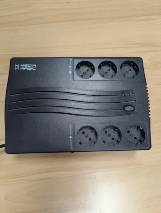 Sistema de Alimentación Ininterrumpida (SAI) de M MEDIA MAGIC. Dispone de varias tomas de corriente para proteger tus equipos. - Diseño en color negro. - Múltiples enchufes disponibles.