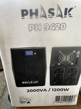 Sistema de Alimentación Ininterrumpida (SAI) PHASAK modelo PH 9420. Ofrece una capacidad de 2000VA y 1200W. El SAI Phasak Essential Interactivo de 2000 VA, modelo PH 9420, es una solución robusta y de alta capacidad destinada a ofrecer protección eléctrica avanzada para equipos críticos en entornos tanto domésticos como de oficina. Su diseño incorpora tecnología interactiva, lo que lo hace especialmente adecuado para manejar fluctuaciones eléctricas y asegurar un suministro de energía constante y fiable. - Pantalla digital para visualización de estado. - Múltiples tomas de corriente. - Ventilador para disipación de calor.