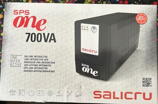 Sistema de alimentación ininterrumpida (SAI) Salicru SPS One de 700VA. Ideal para proteger tus equipos electrónicos. Solo abierto para hacerle la foto. - Tecnología Line-Interactive. - Diseño compacto tipo torre. - Indicadores LED de estado. - Función de arranque en frío.