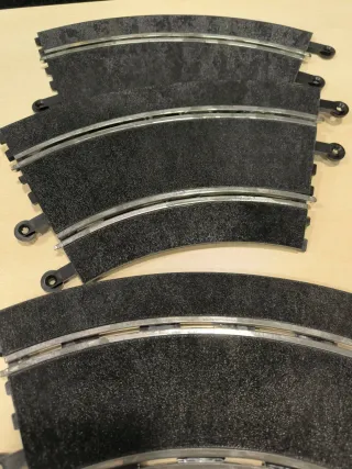 20 curvas estándar, 10 medias rectas y 1 pista de conexiones Todas en buen estado, listas para usar TecniToys, Exin o Triang. Pista negra 1:32 analógica.