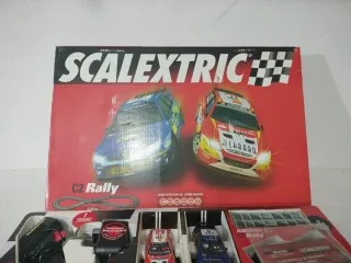 Circuito de coches Scalextric C2 Rally. - Incluye dos coches de rally. - Pistas para montar el circuito.