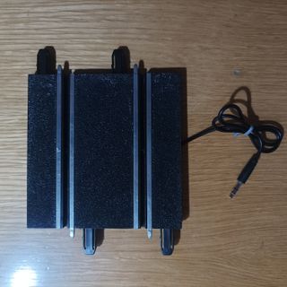 Pista de conexiones Scalextric. Procedente de circuito. Aunque tiene tiempo, nunca se ha usado. Permite conectar un transformador y dos mandos. Se le ha añadido un cable para poder conectar transformadores de otra marca.