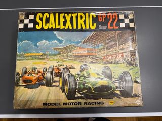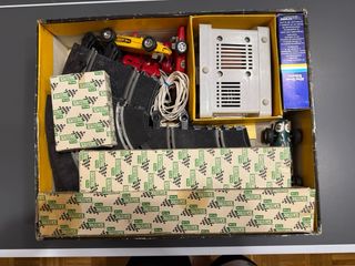 Escucho ofertas por todo el pack. Scalextric antiguo de colección, el estado es como se ve en las fotos, se encuentra en muy buen estado completo, la caja algo deteriorada por el paso del tiempo, pero igualmente en muy buen estado teniendo en cuenta el tiempo que tiene. Incluye el Scalextric GP 22 model motor racing con la ampliación 3 de Scalextric y con transformador incorporado. No lo vendo por partes, no busco intercambiarlo por otras cosas. Podemos convenir el lugar de recogida, preferiblemente en metro Sainz de Baranda. Cualquier duda podeis avisarme.