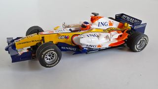 Coche de Scalextric del Renault R28, pilotado por Fernando Alonso. -Eje delantero direccional. - Modelo: Renault R28. - Número: 5. - Piloto: Fernando Alonso. - Marca: Scalextric. ***Slot, Scalextric, scx, Ninco, Carrera, superslot...***