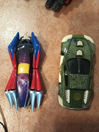 Circuito de Scalextric Carrera Go con temática de Spider-Man. Incluye varios tramos de pista y accesorios. SÓLO EN PERSONA (NO HAGO ENVÍOS) - Varios tramos de pista recta y curva. - Dos coches de carreras. - Mandos y transformador. - Banderolas y accesorios de decoración. * Las escobillas del coche rojo están muy gastadas