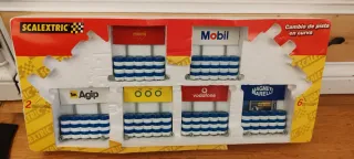 Circuito de Scalextric con cambio de pista en curva. - Incluye 6 barreras con pancartas. - Diseñado para demostrar habilidad cambiando de carril en plena curva.