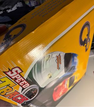 Circuito de coches “Speed Track” – nuevo en caja Vendo circuito de coches a pilas Speed Track, con dos coches de carreras (azul y rojo) y pistas incluidas, todo en su caja original y en perfecto estado. Ideal como regalo para niños a partir de 6 años o para amantes de los circuitos de Scalextric sencillos. Funciona con pilas y permite montar un circuito cerrado para competir con los dos coches al mismo tiempo. Perfecto para pasar ratos divertidos en familia y para introducir a los peques en el mundo de las carreras de coches.
