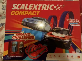 Circuito de Scalextric Compact, modelo Grand Challenge completo. Incluye 2 coches y otros 2 coches más sin estrenar. Solo usado una vez, comprado en Diciembre antes de navidad, conservo ticket de compra del Corte Inglés. Adjunto además: -Set de curvas peraltadas. -Set de curvas y rectas. -Set de rectas cambio carril. -Puente elevado para elevar pista marca Carrera, compatible escala 1/43. - Dos coches Scalextric Compact sin estrenar, Mercedes y Ford Puma con sus blíster correspondientes sin abrir. Con todos los set de ampliación la cuerda o longitud total del circuito pasa de 10 metros. SOLO VENTA EN MANO O PRESENCIAL.