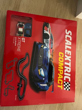 Circuito de carreras Scalextric GT Xtreme Compact. Usado literalmente 3 veces. - Incluye 2 coches a escala 1:43. - Pista de 4,3 metros de longitud. - Diseño compacto para fácil montaje y almacenamiento.