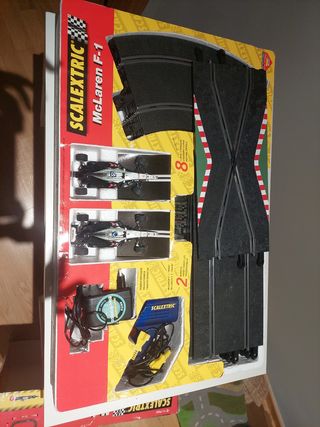 Scalextric McLaren F1. Incluye dos coches, 8 tramos de circuito y transformador. - 2 coches McLaren. - 8 tramos de circuito. - Transformador incluido.