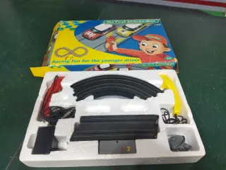 Circuito de carreras My First Scalextric para los más pequeños. Incluye todo lo necesario para empezar a jugar. Pista micro scalextric En perfecto funcionamiento NOTA: destacar faltan los coches - Pista de 90cm x 46cm. - Dos coches de Scalextric. - Mandos para controlar los coches. - Edad recomendada: 3+ años.