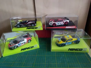 Colección de coches de carreras Ninco para circuitos de slot. NOTA: Coches con el alerón pegado y al rojo le falta un retrovisor Coches de competición con ruedas calibradas,compatibles para correr en circuitos de scalextric carrera ninco scx triang exin scaleauto altaya y otros de slot - Diseños variados y llamativos. - Ideales para coleccionistas y aficionados.