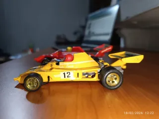 Coche de carreras vintage de la marca Jay Car. Un modelo clásico para coleccionistas. 1:32 - Diseño de coche de fórmula 1. - Color rojo con detalles blancos. - Número de dorsal 12. - hecho en España